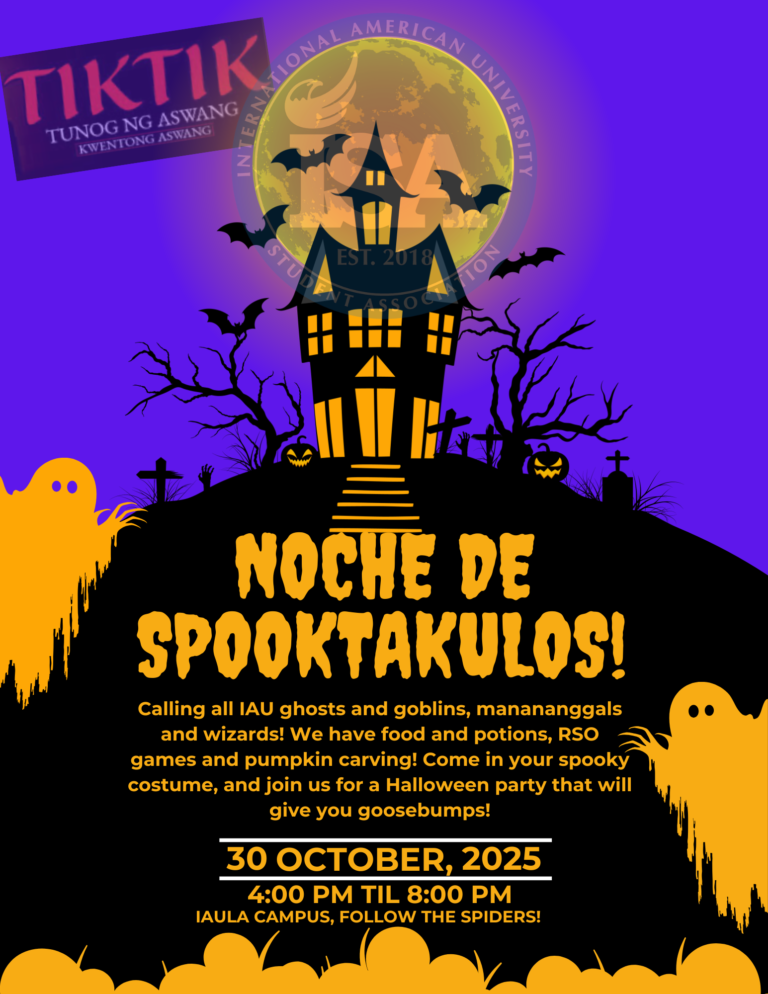 Calling all IAU ghosts and goblins, tikbalangs and manananggals, witches and wizards!🧛🧙♀️👻ISA invites you to come in your spooky costume and join us for a Halloween party that will give you goosebumps!⚰️We’ll have “finger” food, potions (drinks), spooky music, pumpkin…